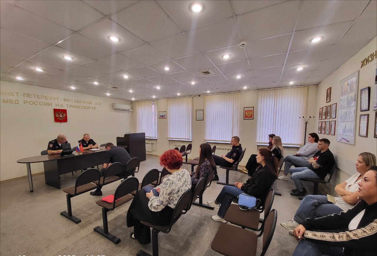 Во Фрунзенском районе г. СПб состоялась встреча заместителя начальника отдела Госавтоинспекции Александра Землякова с сотрудниками СПб-Витебского ЛО МВД России на транспорте, цель которой – профилактика и предупреждение нарушений ПДД РФ среди личного состава.