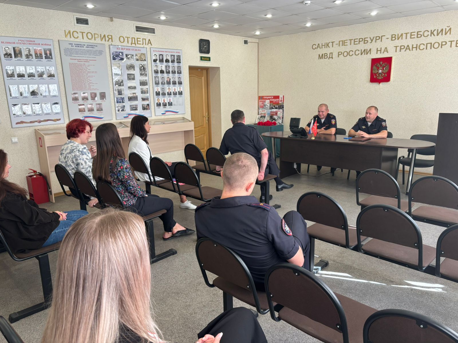 Во Фрунзенском районе г. СПб состоялась встреча заместителя начальника отдела Госавтоинспекции Александра Землякова с сотрудниками СПб-Витебского ЛО МВД России на транспорте, цель которой – профилактика и предупреждение нарушений ПДД РФ среди личного состава.