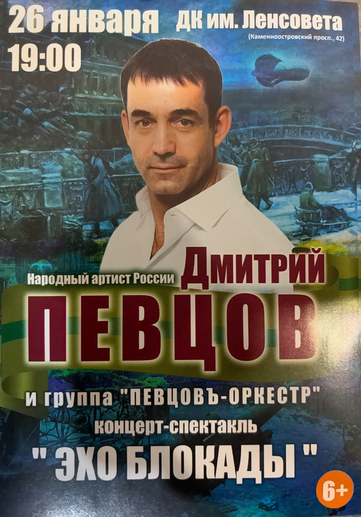 Концерт-спектакль «ЭХО БЛОКАДЫ» состоится 26 января в 19:00 в ДК им. Ленсовета по адресу: Каменноостровский проспект дом 42