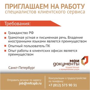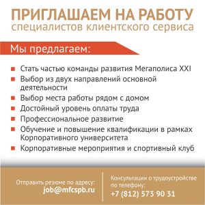 - Консультации о трудоустройстве по телефону: +7 (812) 573 90 31