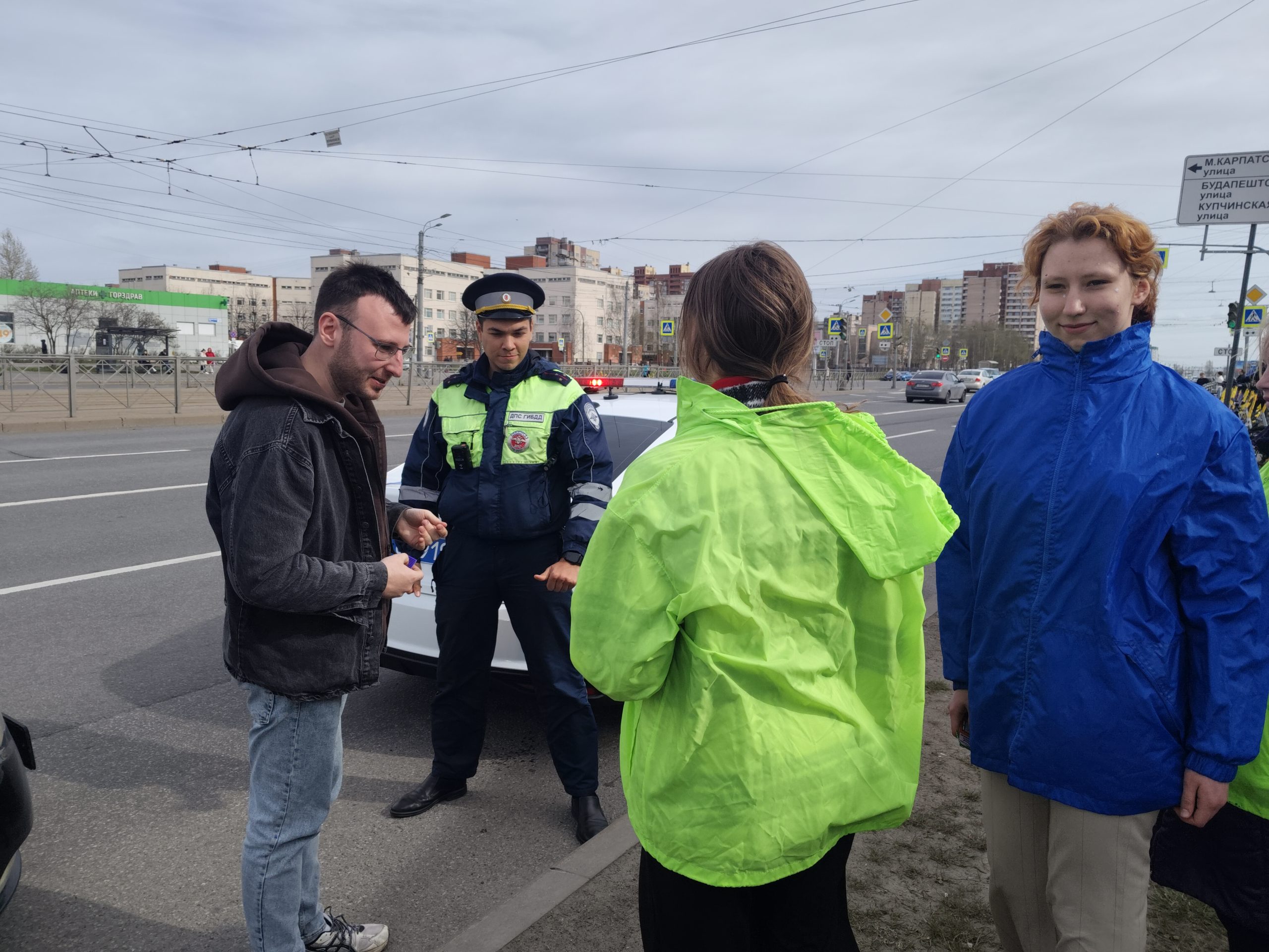 У станции метро «Дунайская» во Фрунзенском районе прошло масштабное профилактическое мероприятие по безопасности дорожного движения. Его организовали Госавтоинспекция совместно с молодёжным центром «Фрунзенский», а также представителями муниципальных образований Александровский и Балканский.
