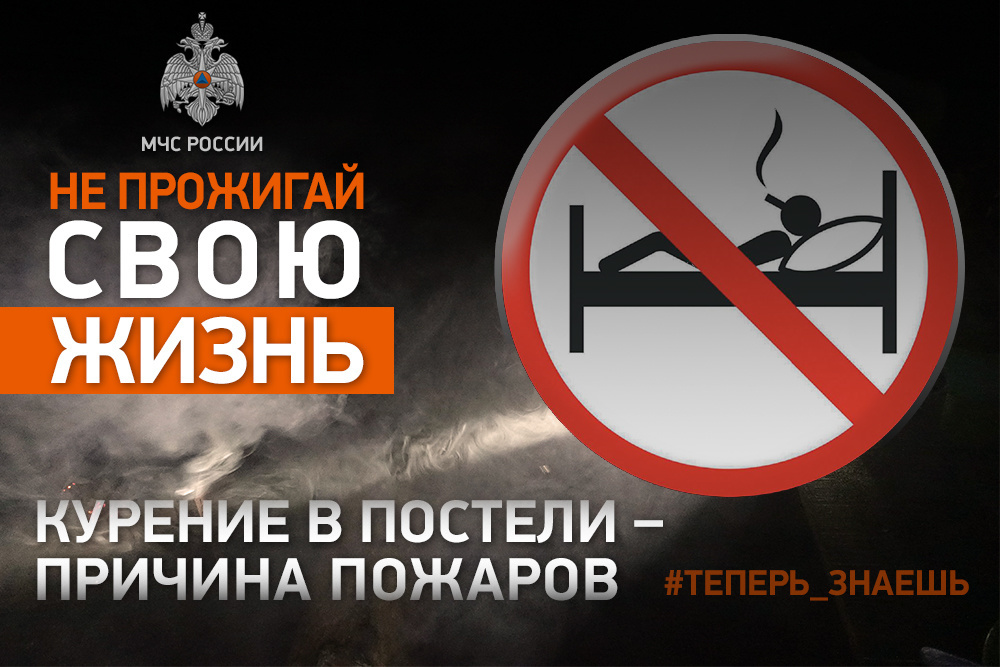 Любителям курения необходимо знать, что особенно опасно курить в постели - курящий человек засыпает, сигарета падает на постельные принадлежности, и происходит загорание. Человек может даже не почувствовать первых признаков пожара.